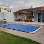 casa p/ venda contendo: 02 quartos ( sendo um suíte ), sala, banheiro social, cozinha com ármarios, garagem, dependência completa, área de serviço coberta, piscina ( aquecida por energia solar ) e área gourmet.